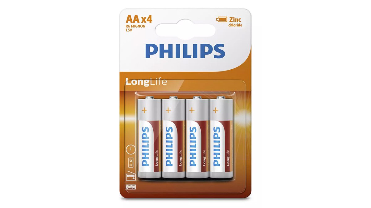 Philips Longlife Zinc Chloride Μπαταρίες R6L4B/10 Aa R6 Mignon, 4Τμχ