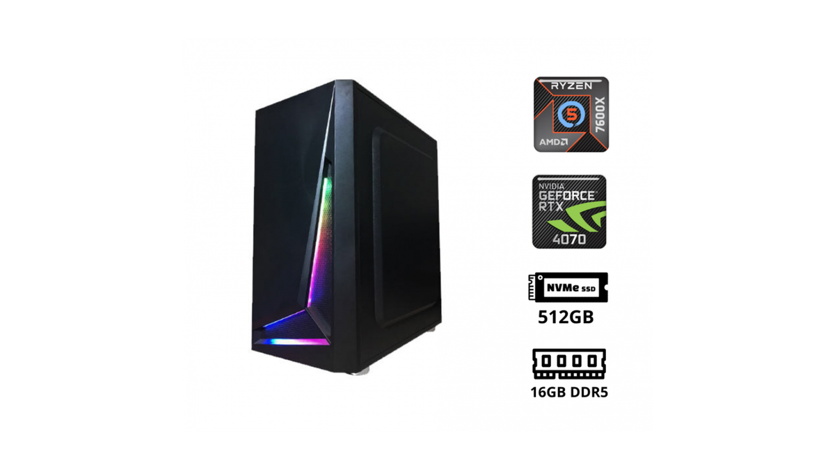 Lp Phoenix (Ryzen 5 7600X / Rtx 4070 12Gb / 16Gb Ddr5 4800 / 512Gb Nvme / Win11/ Gaming Pc Build