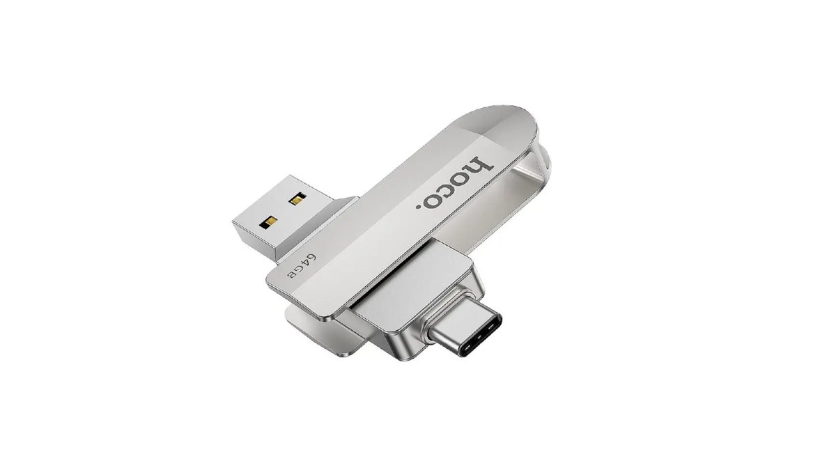 Flash Drive Hoco Ud10 2 In 1 64Gb Usb-A 3. 0 Και Usb-C Συμβατό Με Windows Mac Linux Και Android Ασημί