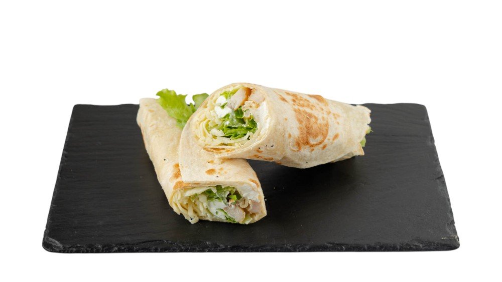 Με κοτόπουλο, μπέικον, παρμεζάνα, αυγό βραστό, ντομάτα, iceberg και Caesar`s sauce. Συνοδεύεται από πατάτες τηγανητές