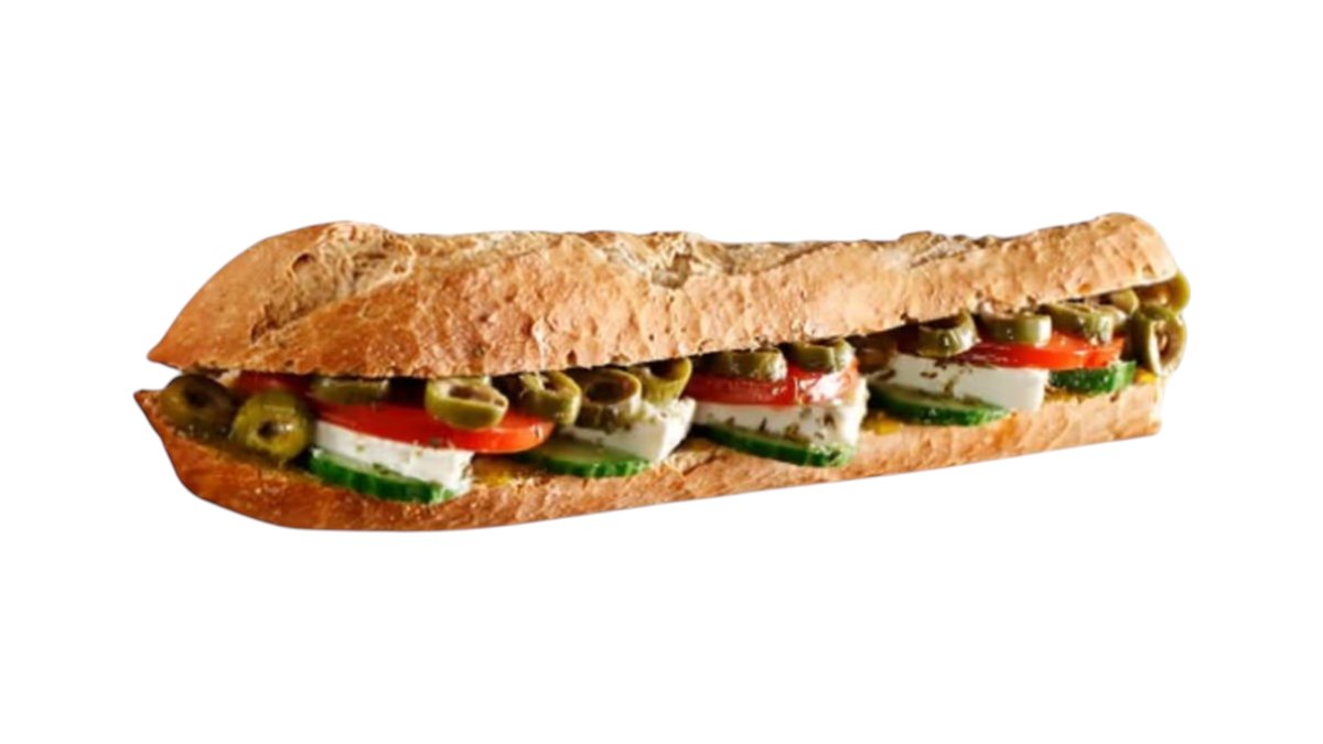 Greek traditional recipe in French baguette with whole wheat flour! With fresh tomato and cucumber, oregano and extra virgin olive oil!
