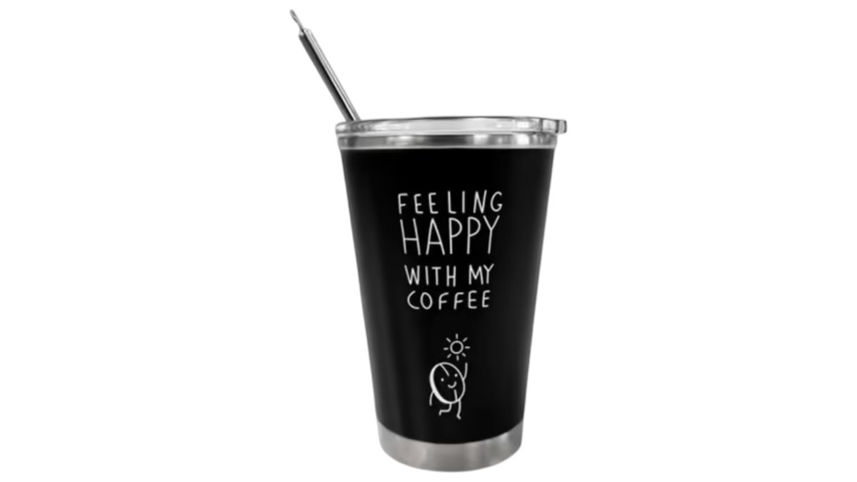 Reusable cup made from recycled plastic and recycled paper from disposable coffee cups. It is 100% recyclable and helps reduce our environmental footprint.