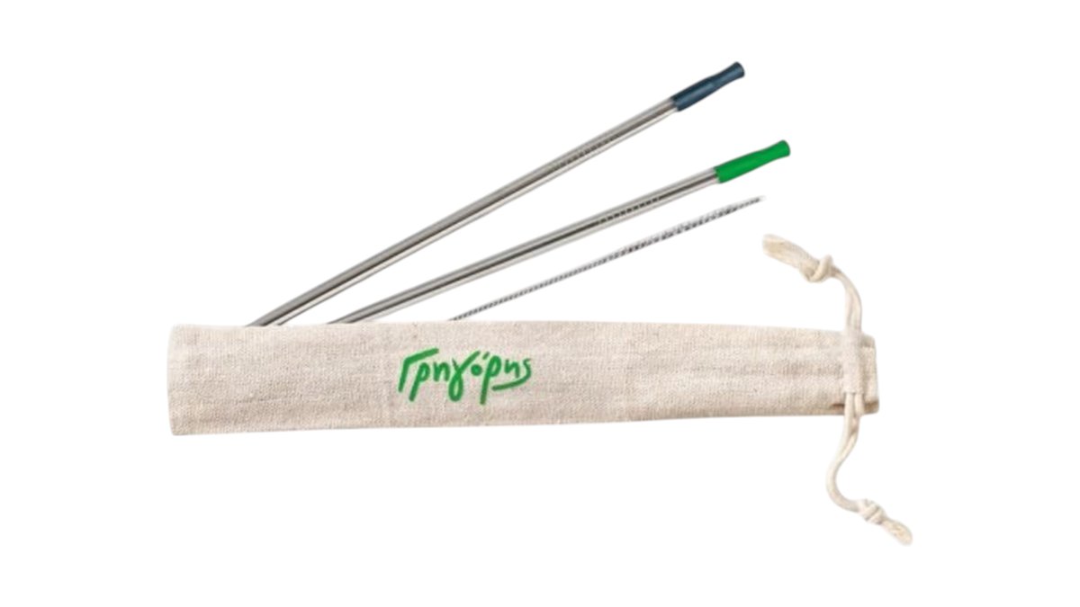 We are reducing our environmental footprint with reusable Grigoris straws. The set consists of 2 inox straws with a detachable silicone mouth that protects the lips and teeth, a practical cleaning brush and a beautiful pouch-case so you can have them everywhere with you.