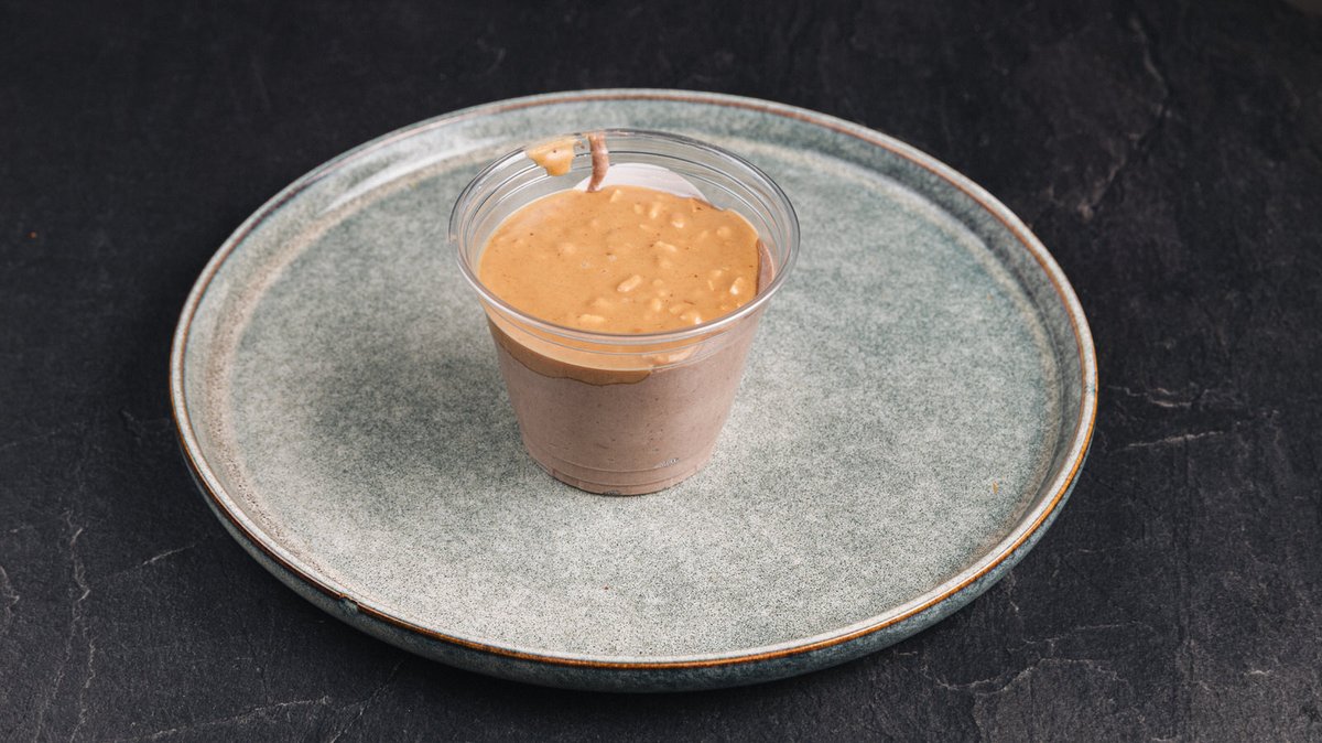 Στραγγιστό γιαούρτι 2%, 25g πρωτεΐνη, granola, φυστικοβούτυρο, mix σπόρων ενέργειας, μέλι. Πρωτεΐνη 55g, Ενέργεια 760kcal, Υδατάνθρακες 68g, Λίπη 27g