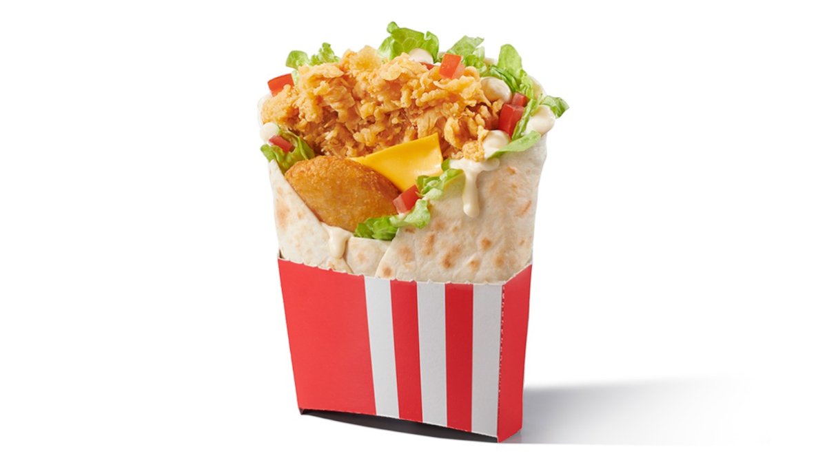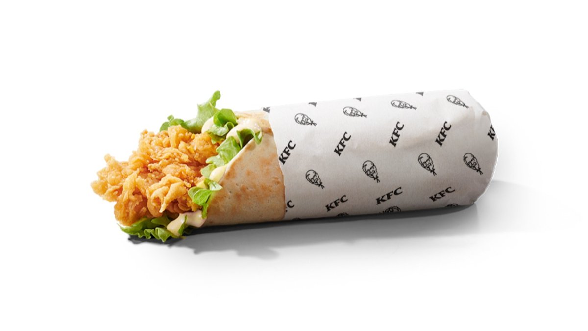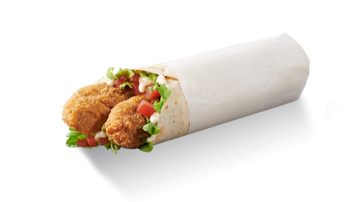 2 τραγανά φιλετάκια veggie τυλιγμένα σε τοσταρισμένη τορτίγια με ντομάτα, iceberg & πικάντικη μαγιονέζα