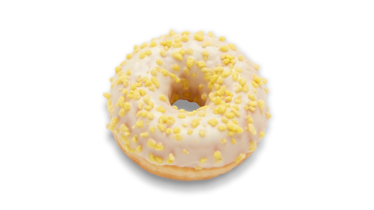 Αφράτο Donut γεμισμένο με λαχταριστή κρέμα λεμονιού και λευκό γλάσο με κίτρινες ζαχαρένιες πέρλες