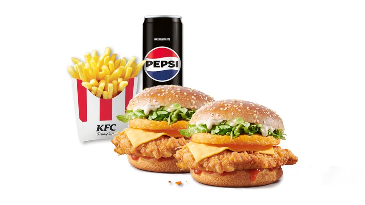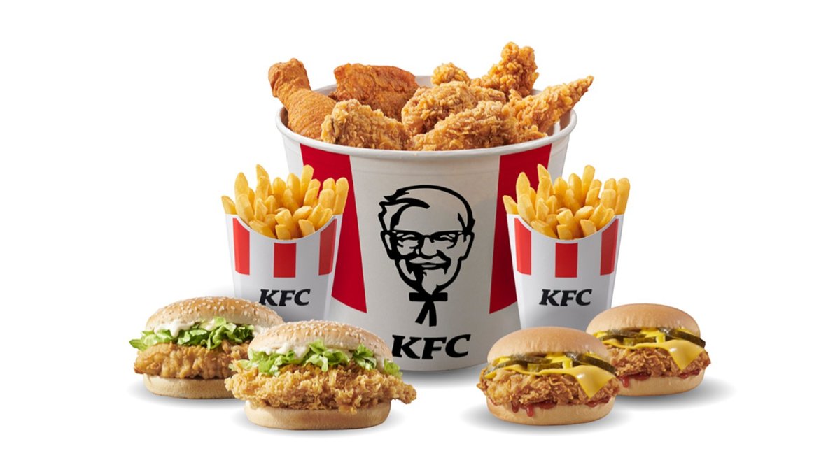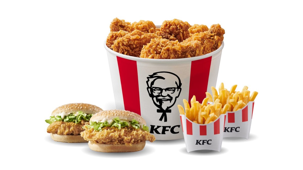 1 Variety Bucket (4 COB + 6 crispy strips + 10 hot wings) + 2 Fillet/ Zinger Burger + 2 Cheeseburger + 2 Medium Fries