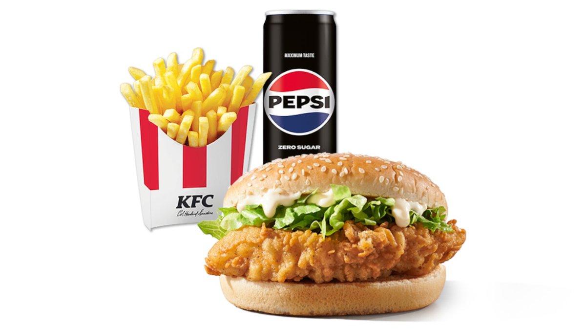 1 Zinger Burger (πικάντικο φιλέτο κοτόπουλο με φρεσκοκομμένο μαρούλι iceberg και μαγιονέζα) + Medium fries + 1 Αναψυκτικό 0.33 l
