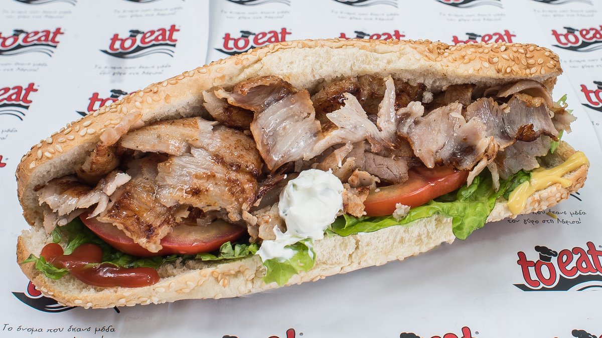 Σάντουιτς σουβλάκι χοιρινό με τα υλικά της επιλογής σου