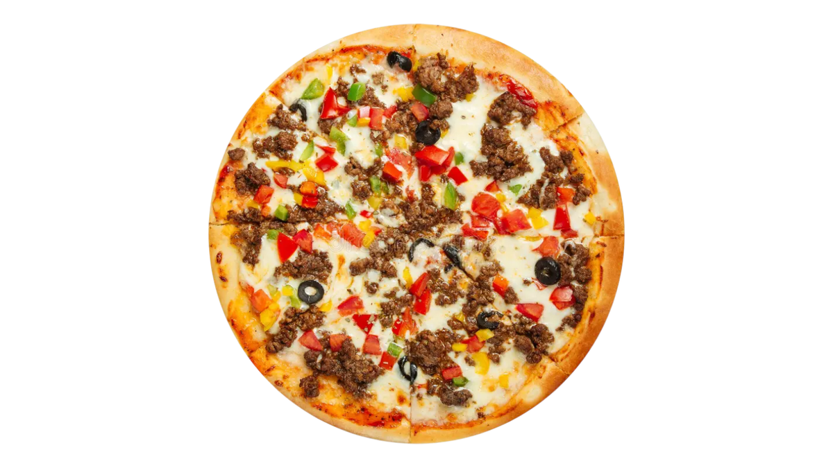 Σάλτσα ντομάτας, τυρί γκούντα, μοσχαρίσιο κιμά, πιπεριά, κρεμμύδι και σπόροι καυτερής πιπεριάς