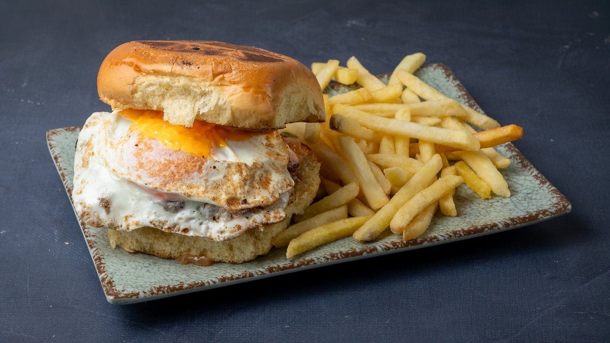 Με διπλό μπιφτέκι, τσένταρ, τηγανητό αυγό, καραμελωμένο κρεμμύδι, μπέικον και hannibal sauce