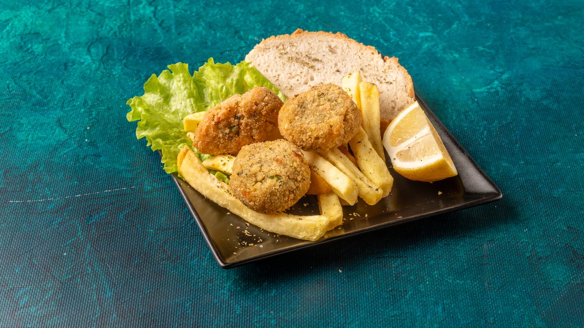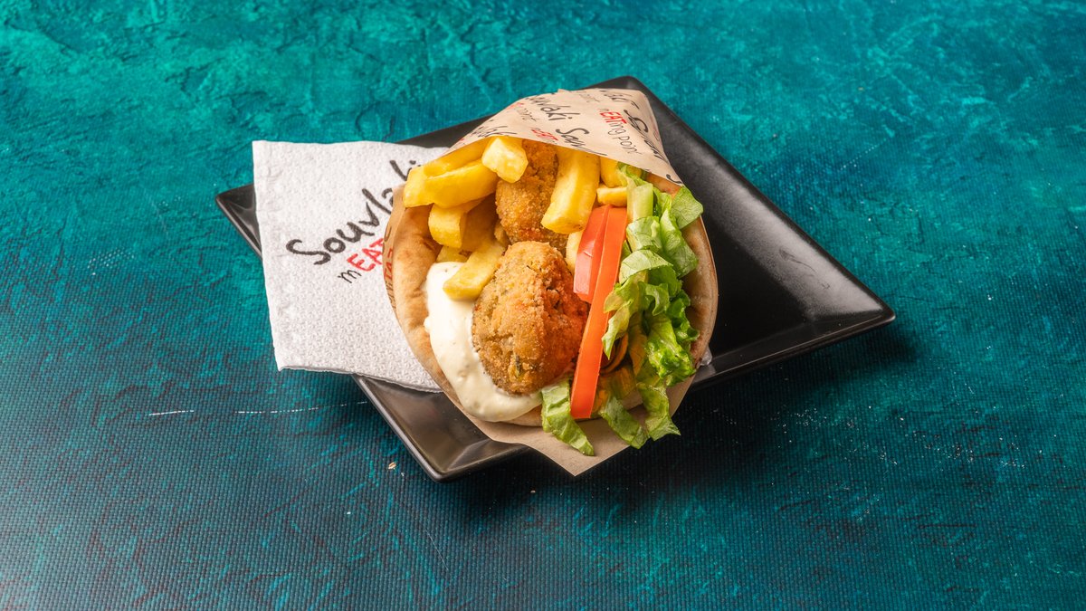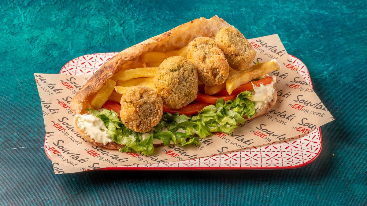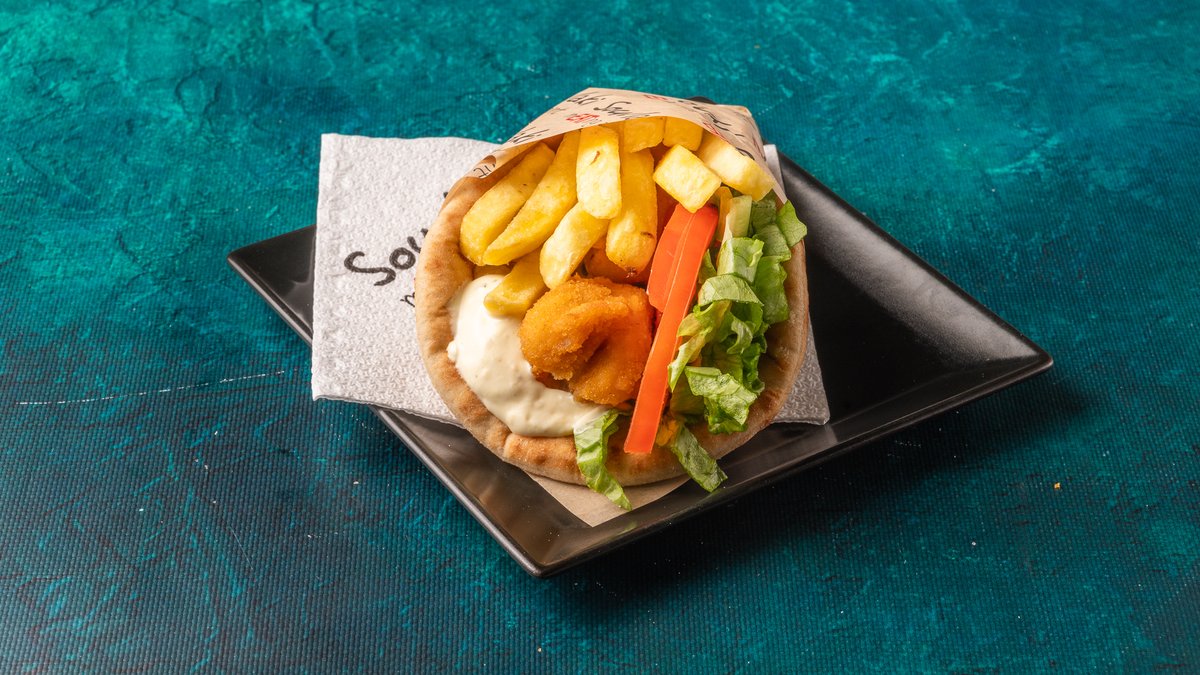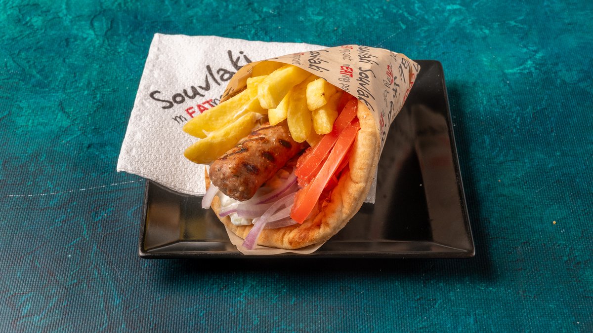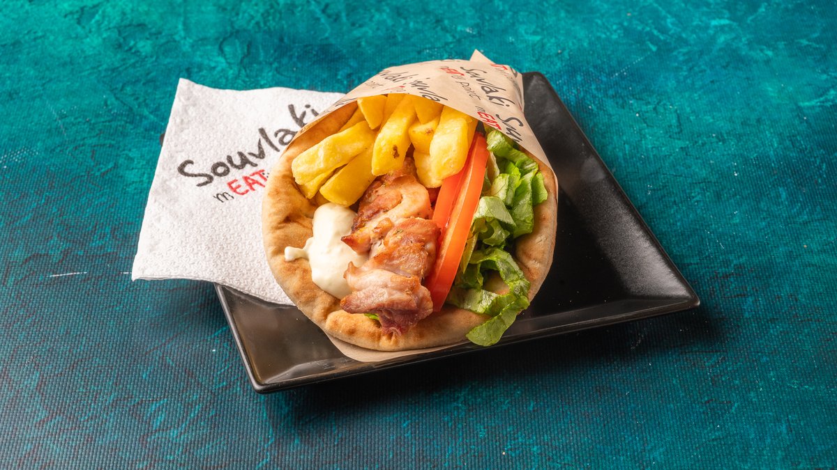 Συνοδεύεται από πατάτες τηγανητές, ντομάτα ψητή, κρεμμύδι ψητό, 2 πιτάκια μίνι και σως