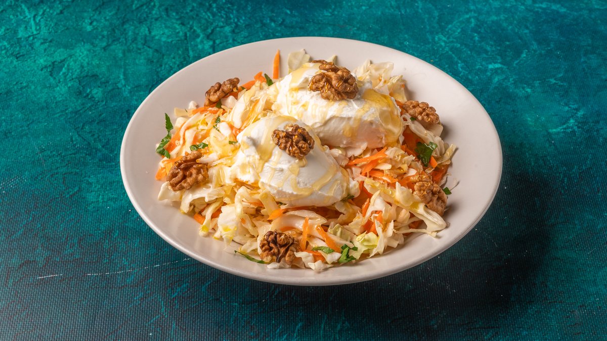 Λάχανο, καρότο, μαϊντανό, σέλινο, ελαιόλαδο, ξύδι, γιαούρτι, μέλι, καρύδια