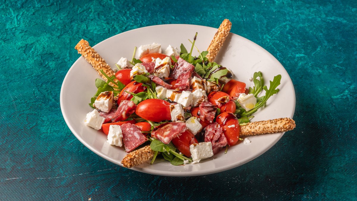 Ρόκα, ντοματίνια, φέτα, κριτσίνια, σαλάμι λευκάδος