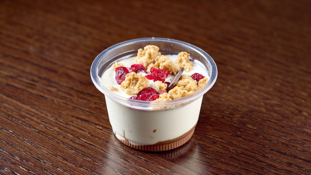 Με γιαούρτι, μέλι, ganola, goji berry και πραλίνα