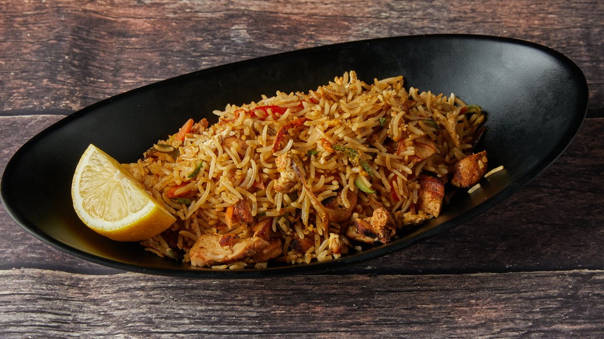 Με ρύζι basmati με άρωμα λεμονιού ή τηγανητές φέτες πατάτας (fried wedges)