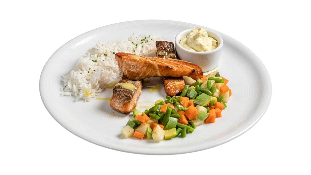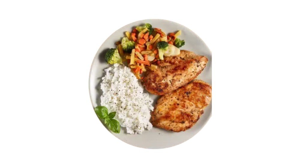 520 θερμίδες ,30 g πρωτεϊνη. Με λαχανικά στον ατμό και ρύζι μπασμάτι