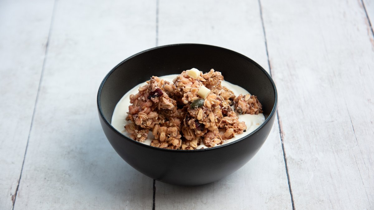 Με μπανάνα, φυστικοβούτυρο, λευκή σοκολάτα και μπισκότο κακάο. Χωρίς προσθήκη ζάχαρης