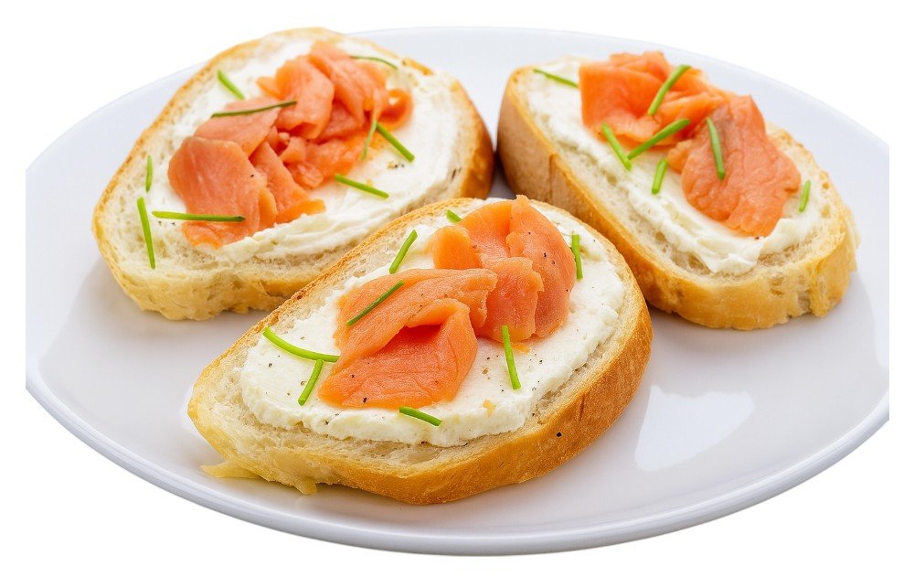 Μπρουσκέτα σολώμού καπνιστού με τυρί κρέμα, φρέσκο κρεμμυδάκι και άνηθο