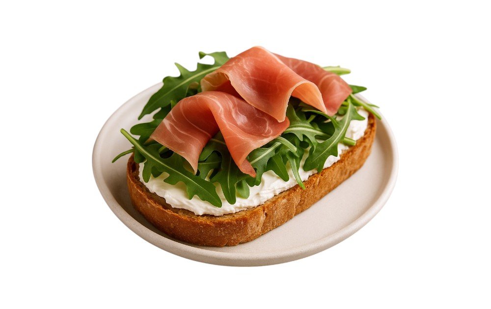 Μπρουσκέτα με προσούτο, ρόκα και τυρί κρέμα