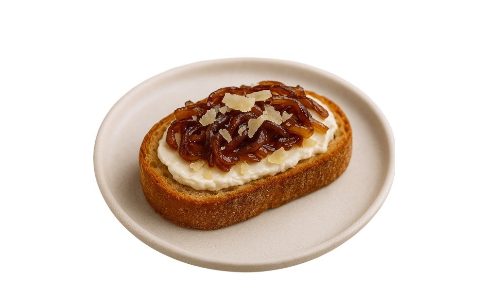 Μπρουσκέτα με Καραμελώμένα Κρεμμύδια και Γραβιέρα Μυτιλήνης
