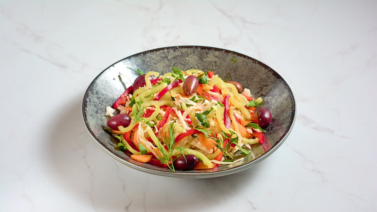 Με ντομάτα, αγγούρι, κάππαρη, κρεμμύδι, πιπεριά, ελιές και ξινομυζήθρα