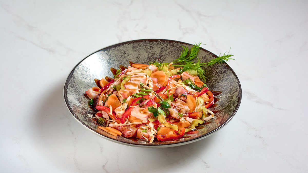 Με καλαμάρι, χταπόδι, μύδια, γούνα και γαρίδες