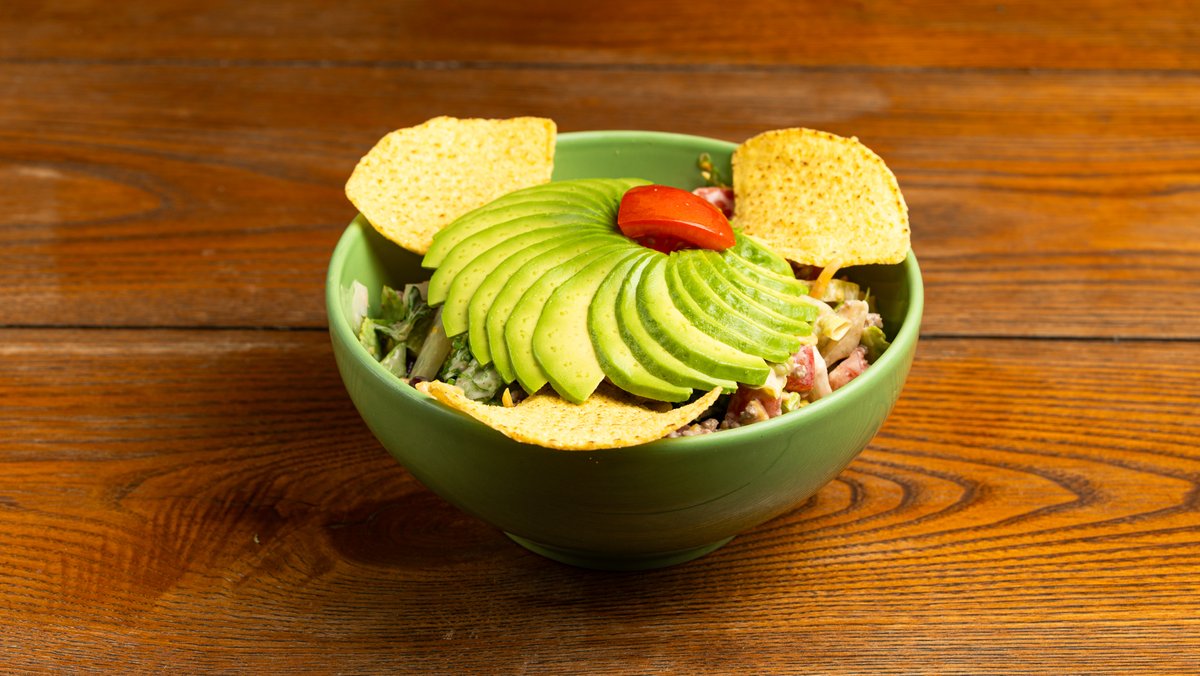 Μαρούλι, ντομάτα, πιπεριά, κρεμμύδι, φασόλι, κιμά, τυρί, αβοκάντο και νάτσος