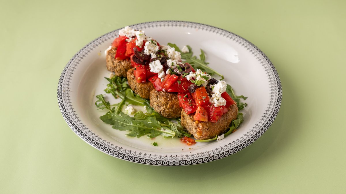 Γεμιστό μπιφτέκι με φέτα, ντομάτα, ελιά