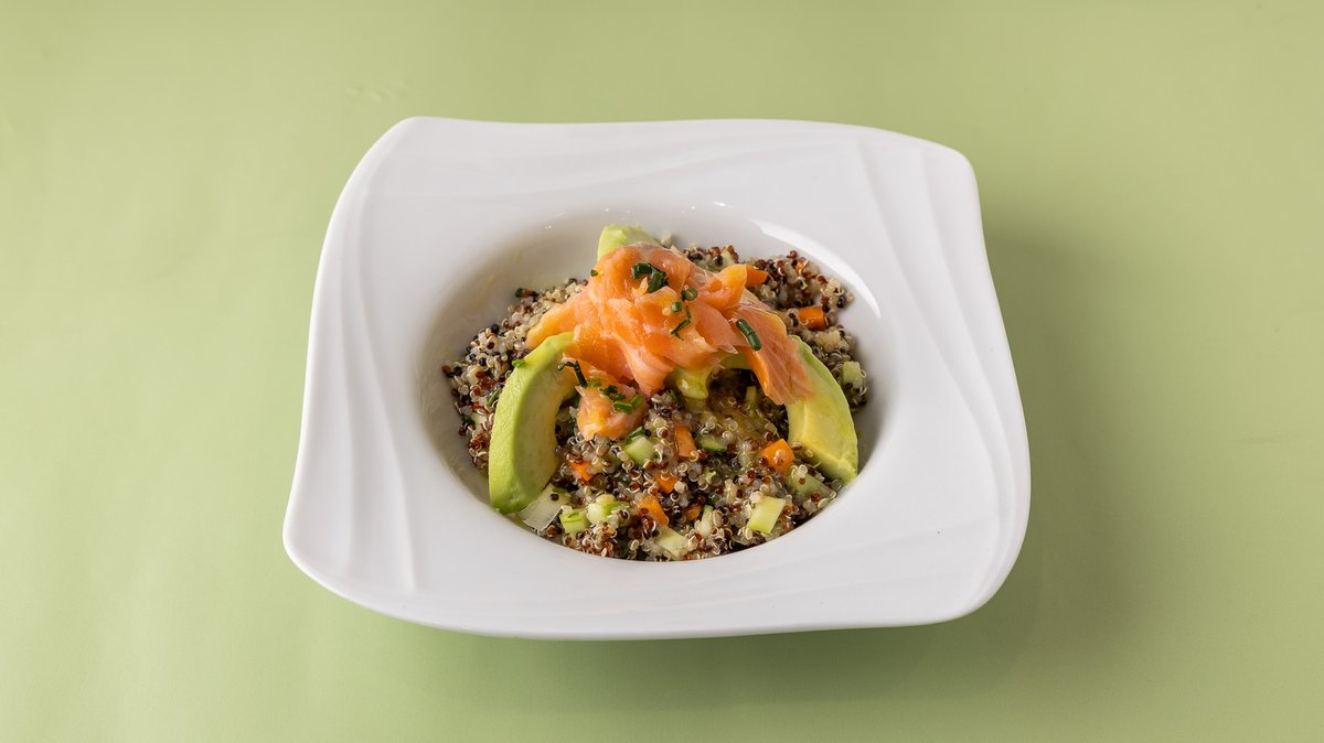 Αποτελείται από flakes καρότου, αγγούρι, αβοκάντο, κρεμμύδι, άνιθο, καπνιστό σολομό και βινεγκρέτ εσπεριδοειδών