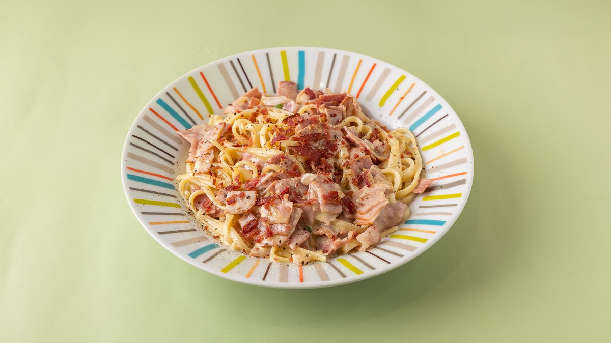 Αποτελείται από λιγκουίνι, αλακρέμ, μπέικον και παρμεζάνα