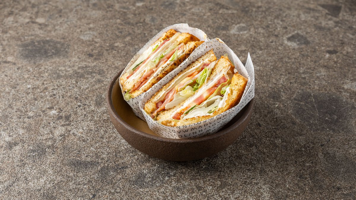 Blt Club Triple Toast με Brioche, Bacon, Edam, Μαγιονέζα, Iceberg, Ντομάτα και Κρέμα Τυριού