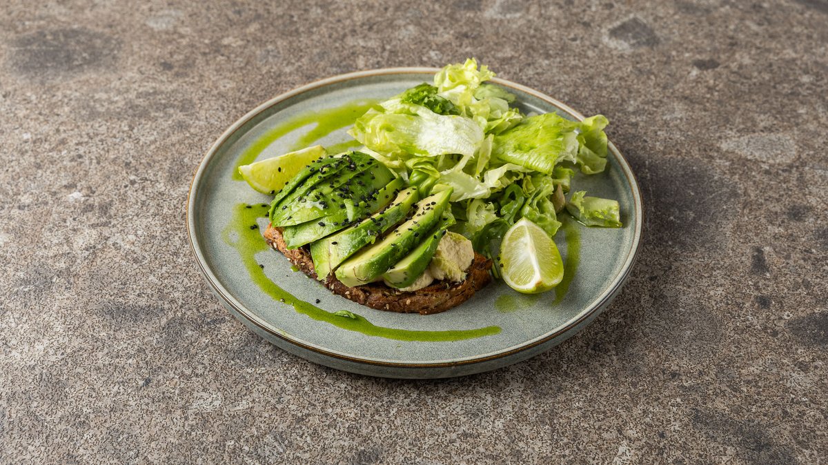 Avocado Toast με Φρυγανισμένο Ψωμί, Avocado, Hummus, Μαύρο Σουσάμι, Λάδι Μυρωδικών και Πράσινη Σαλάτα Επιλογή Για Προσθήκη Από Αυγό Τηγανιτό Αυγό Ποσέ, Αυγό Scrabbled