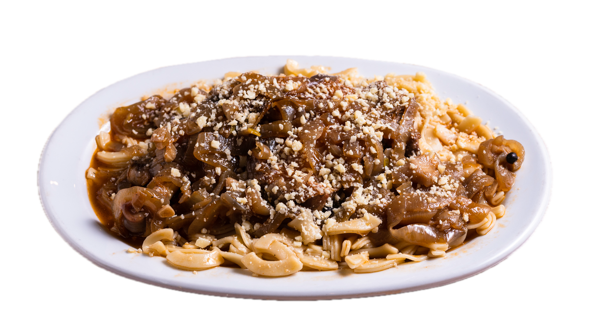 Σπιτική καπνιστή πανσέτα, σάλτσα ντομάτας, pecorino Romano, λευκό κρασί, καυτερή πιπεριά