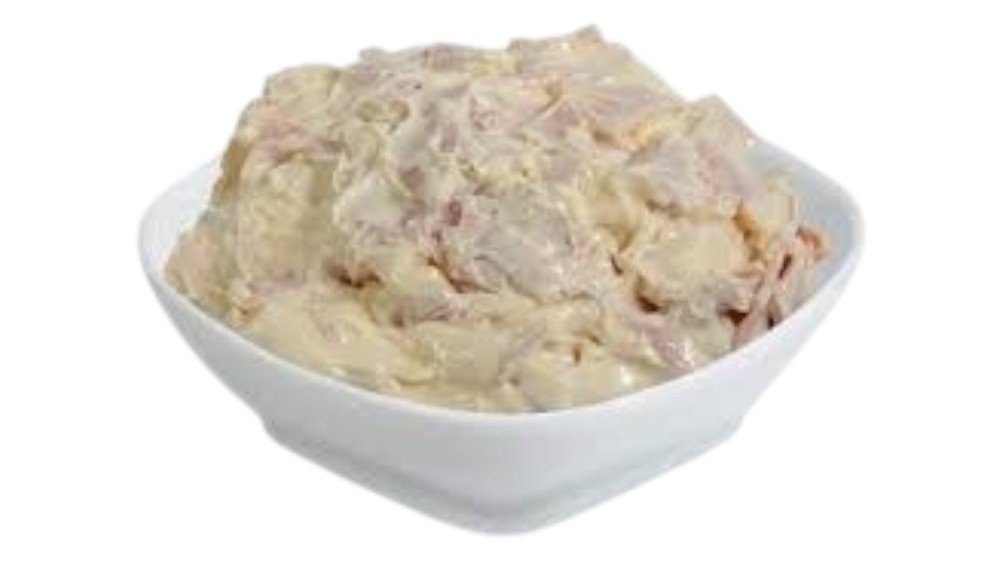 Με κοτομπουκιές, τυρί, πατάτες, κίτρινη σως και μπέικον