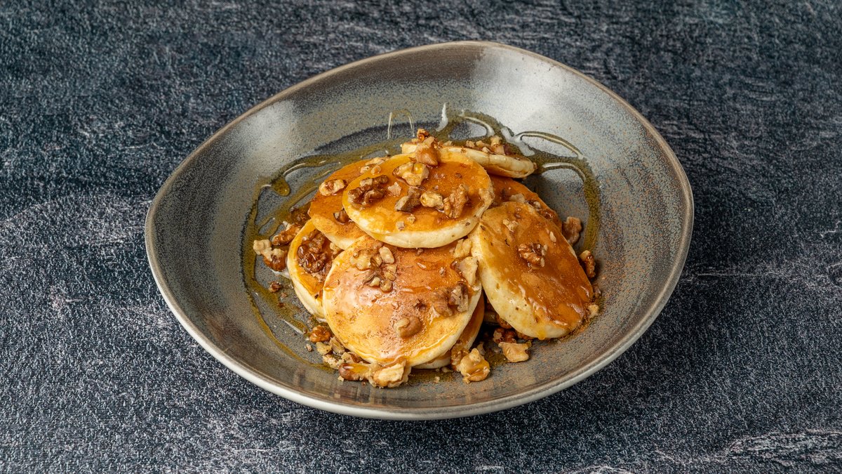 Μίνι pancake με μέλι, καρύδια, κανέλα