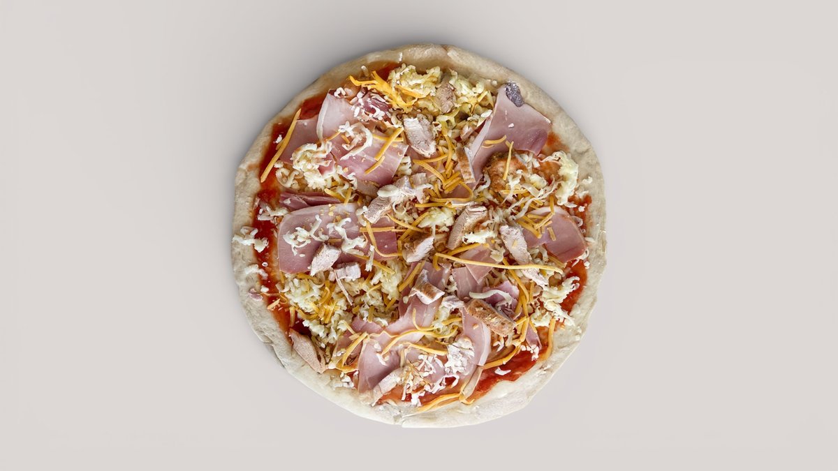 Με σάλτσα, τυρί, ζαμπόν και μπέικον