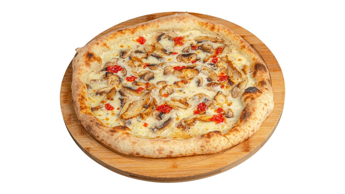 Με σάλτσα, τυρί, κοτόπουλο, μανιτάρια και πιπεριά
