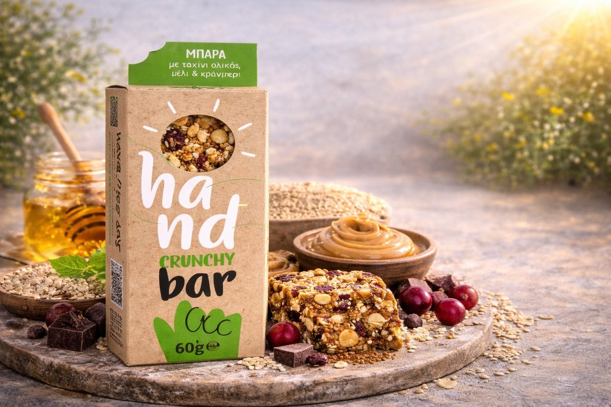 Χειροποίητες μπάρες που κουβαλάνε στο όνομά τους τη λέξη HAND, γιατί φτιάχνονται στο χέρι και μιλάνε κατευθείαν στη διάθεση. ΧΩΡΙΣ Φοινικέλαιο , , ΧΩΡΙΣ συντηρητικά, μόνο καθαρή ενέργεια και αληθινή γεύση.