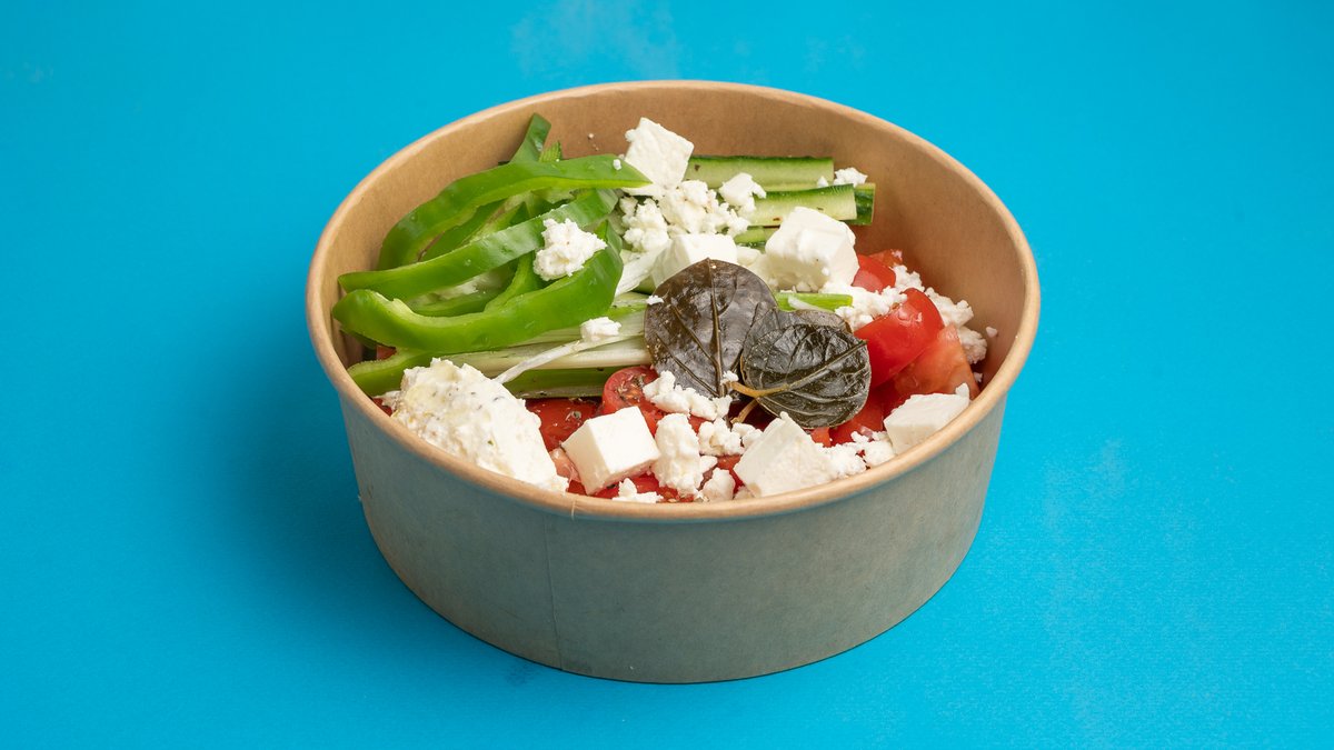 Με ντοματά, ντοματίνια, αγγούρι, φρέσκο κρεμμύδι, πιπεριά φύλλα κάπαρης Φετα και τυροκαυτέρη