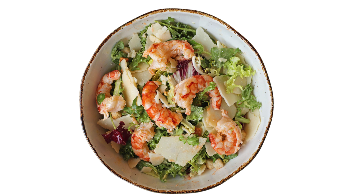 Salad with iceberg, 5 No1 shrimp, bacon, parmesan, croutons and Caesar's sauce