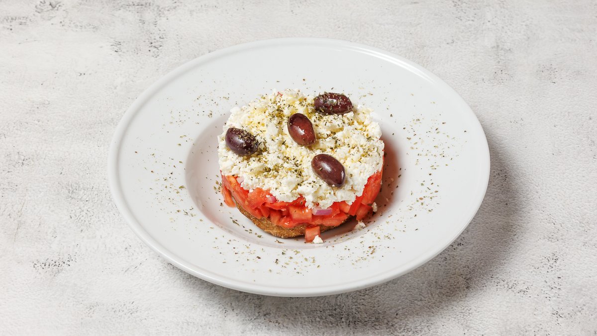 Mε παξιμαδάκια, ντομάτα, φρέσκο κρεμμυδάκι, ελιές, κάπαρη, ξινομυζήθρα και οξυμέλι