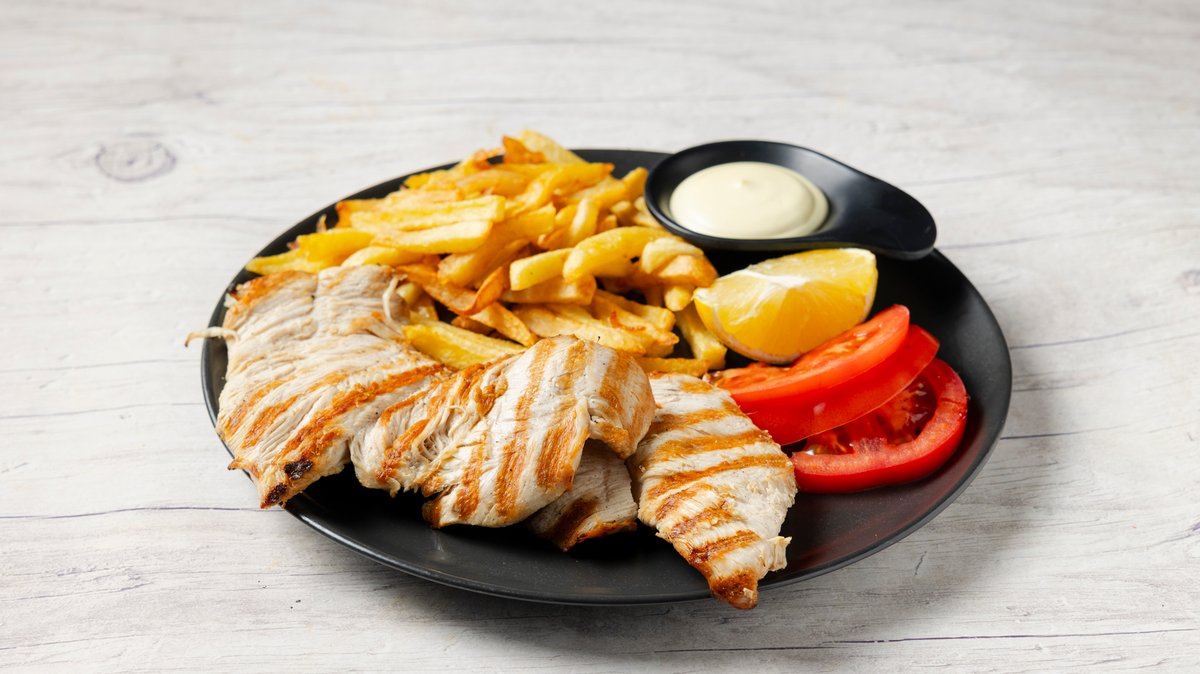 Από κιλότο με πατάτες , ψητά λαχανικά