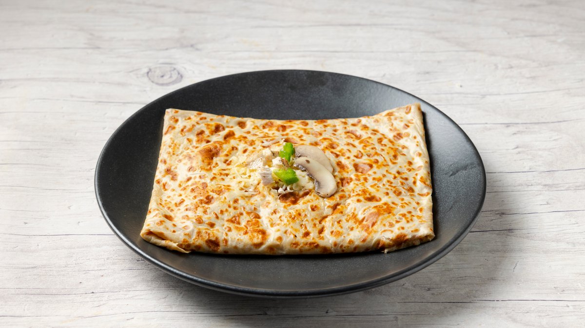 Με καπνιστή πανσέτα, χοιρινή ωμοπλάτη, πράσινη πιπεριά, φρέσκα μανιτάρια και κρέμα γάλακτος (συνοδεύεται με τυριέρα)