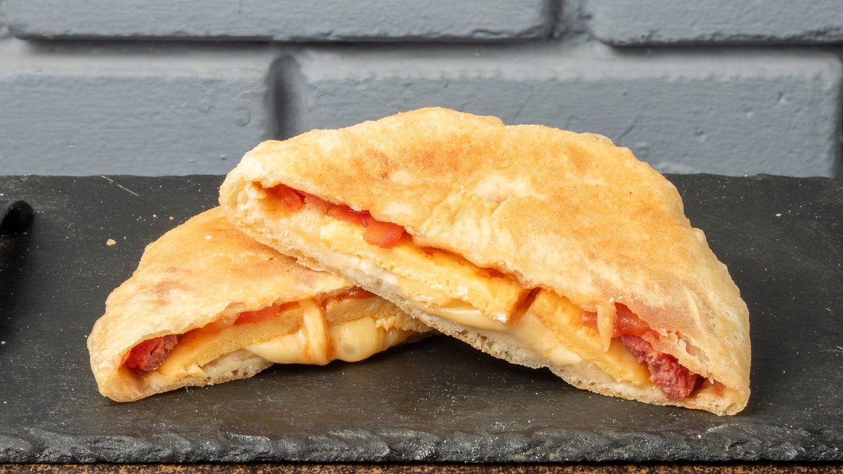 Φιλέτο κοτόπουλο μαγειρεμένο μία κόκκινη πιπεριά και μυρωδικά. Με mix τυριών Gouda, mozzarella & Philadelphia.