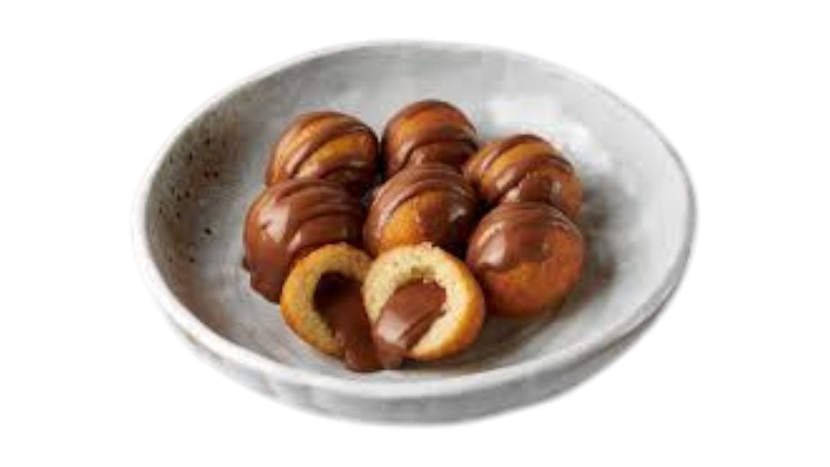 Λουκουμάδες Γεμιστοί Με Πραλίνα Φουντουκιού, Μπανάνα, Μπισκότο
