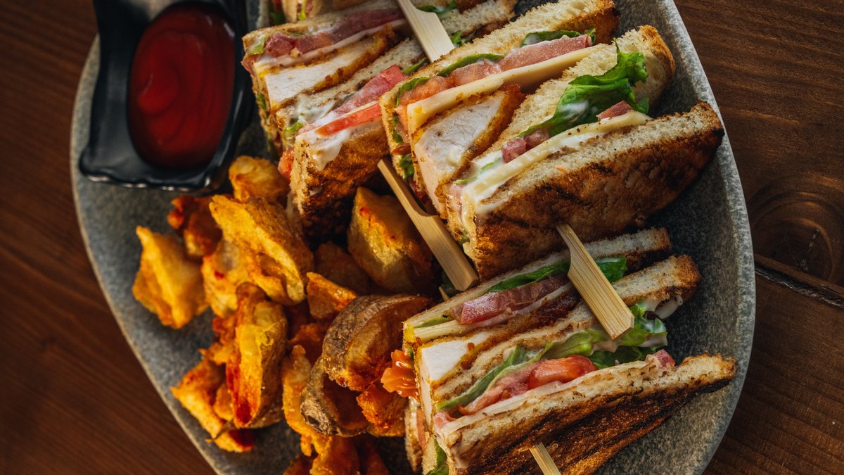 Τραγανό κοτόπουλο, cheddar, μαρούλι, ντομάτα, μπέικον, μαγιονέζα και ketchup