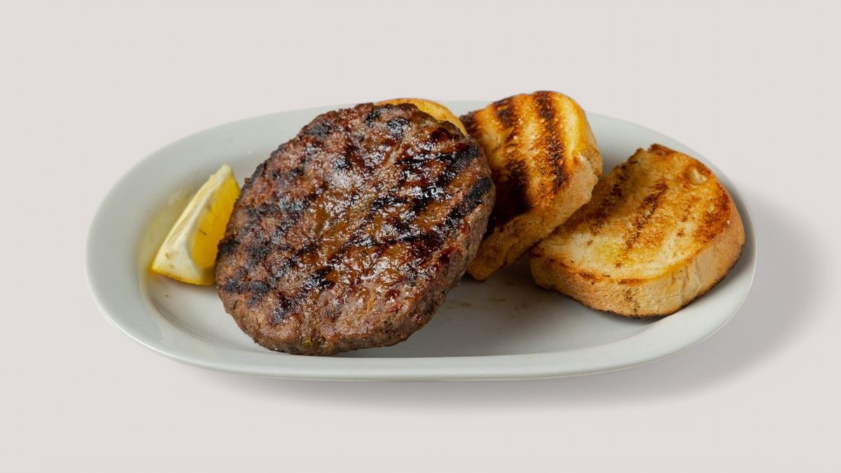 With 2 180 g beef burgers, fried egg, bacon, cheddar cheese, lettuce, caramelized onion, pickled cucumber and bbq sauce. Served with country fries