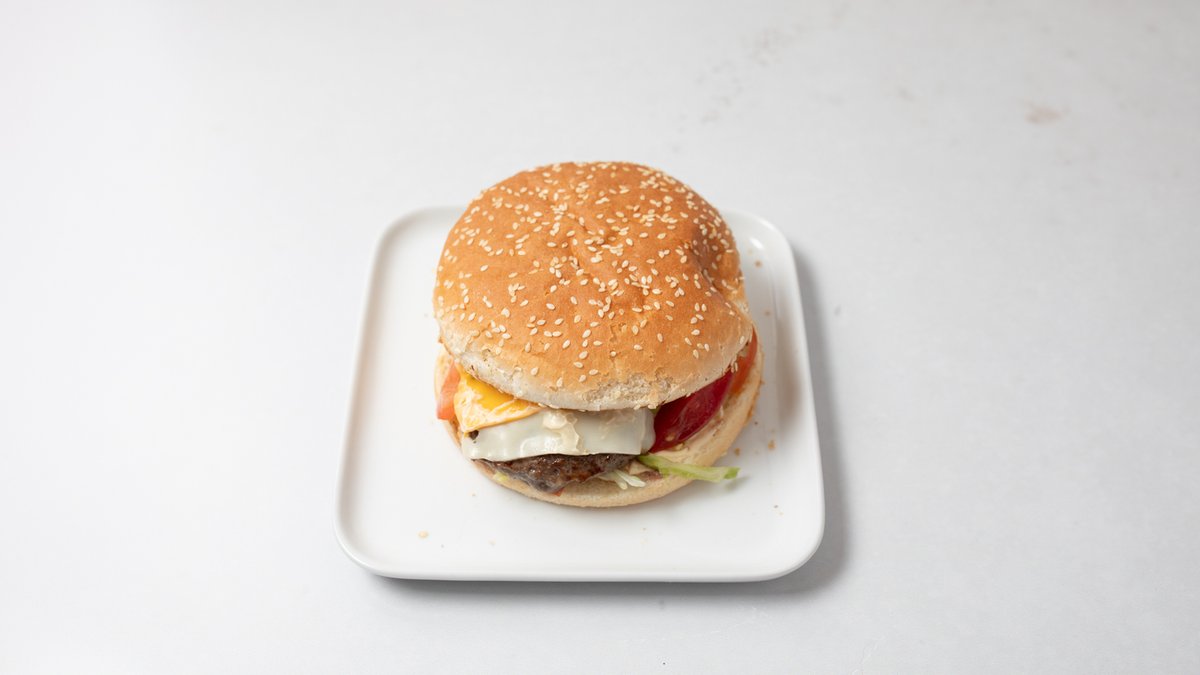 With beef burger 180 g, cheddar, pickled cucumber, tomato, lettuce and remoulade sauce. Served with country potatoes