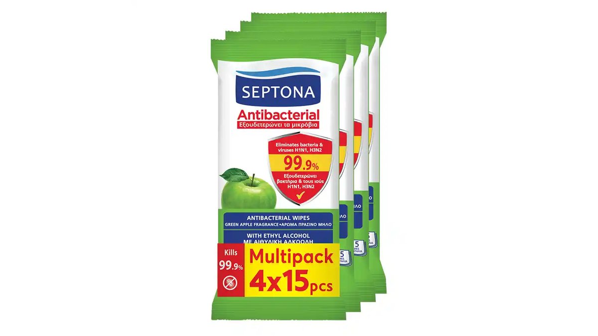 Septona Refresh Υγρά Μαντηλάκια Πράσινο Μήλο 4x15τεμ.